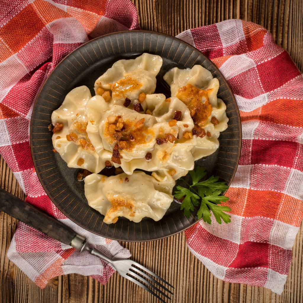 Zutaten: Für den Teig der Pierogi: 3 Tassen Weizenmehl 1 Ei 3/4 Tasse warmes Wasser Eine Prise Salz Für die Füllung: 250g